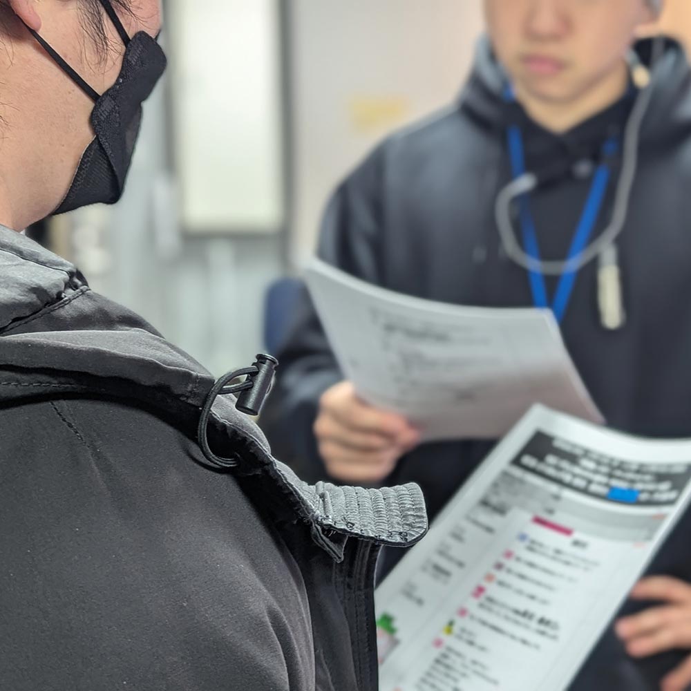 ロケ現場へ向かい、担当ディレクターと合流したら、円滑に撮影が進められるように、1日のスケジュールの確認と打ち合わせを改めて行います。