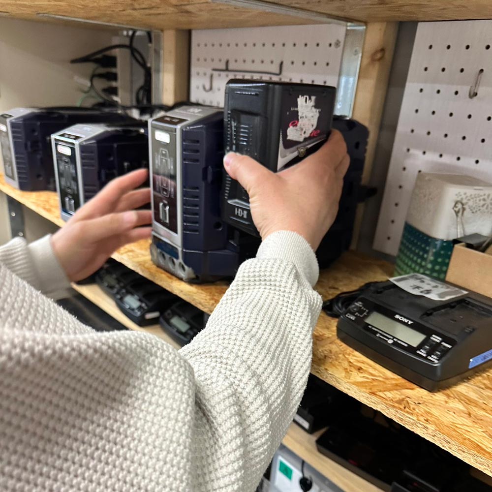 バッテリーなど繰り返し使用するものは充電し、次に使うスタッフのために、汚れた機材は元通り綺麗にします。